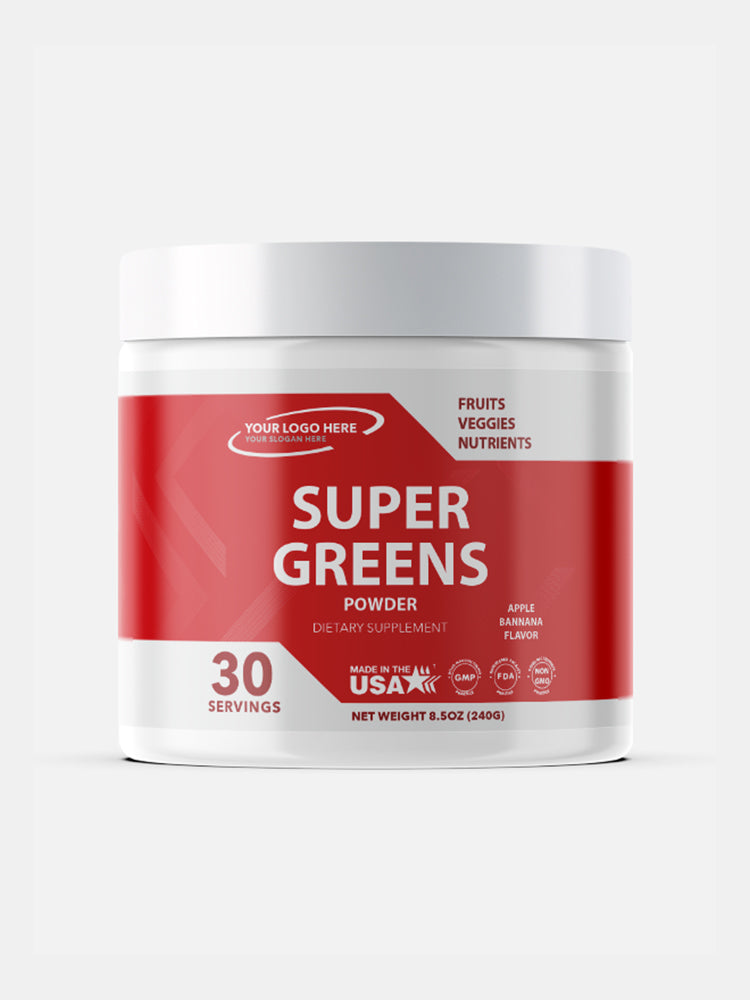 Introducing our Greens Powder - a powerful blend of nutrient-rich spinach, spirulina, chlorella, banana, and apple. Packed with essential vitamins, minerals, and antioxidants, this green superfood mix provides a natural boost to your products and customers' health. Elevate your brand's offerings with this delicious and nutritious addition, perfect for smoothies, shakes, and more.